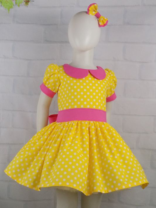 Girl Yellow Polka Dot Dress with Collar for Pageant Personality Wear