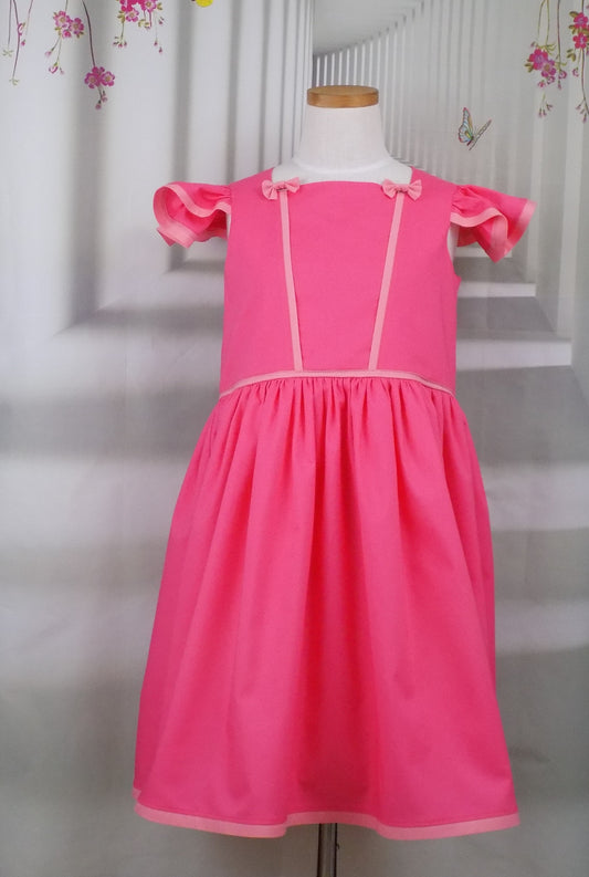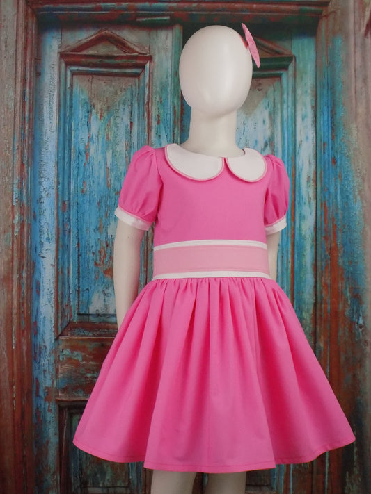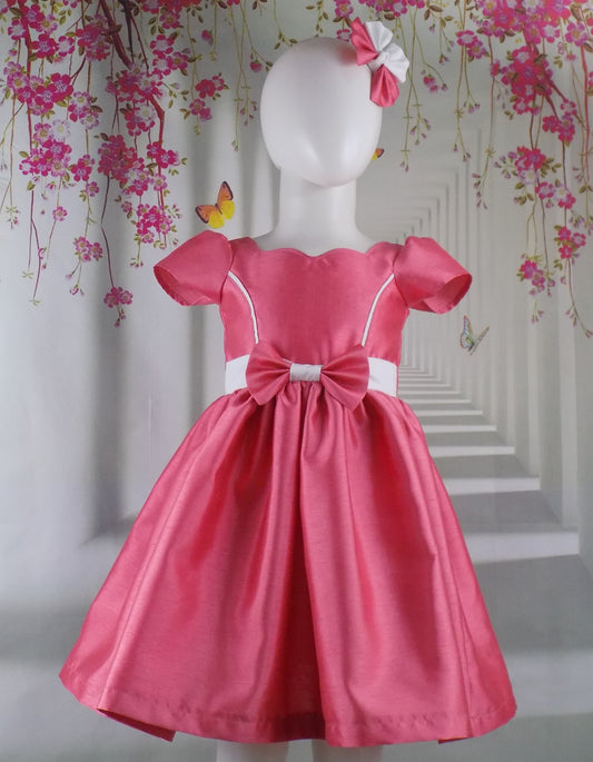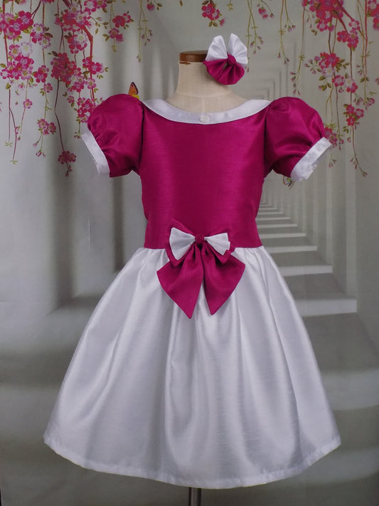 Hot Pink and White Interview Dress for Pageants in Faux Silk Dupioni for Toddlers to Mini Miss