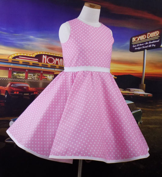 Girls Sleeveless Candy Pink Polka Dot Dress for Pageant Personality Wear, Interview or 50's OOC
