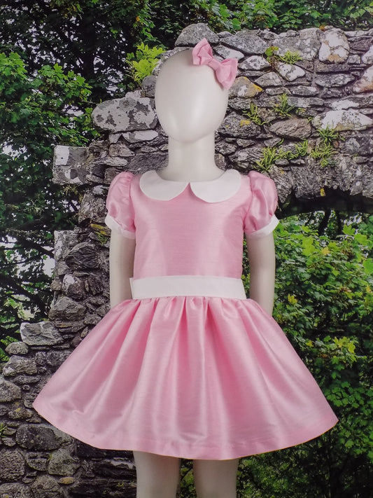 Baby Pink Interview Dress for Pageants in Faux Silk Dupioni for Babies and Toddlers