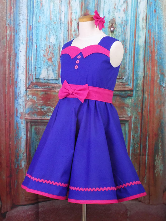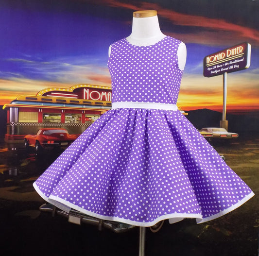 Girls Sleeveless Violet Purple Polka Dot Dress for Pageant Personality Wear, Interview or 50's OOC