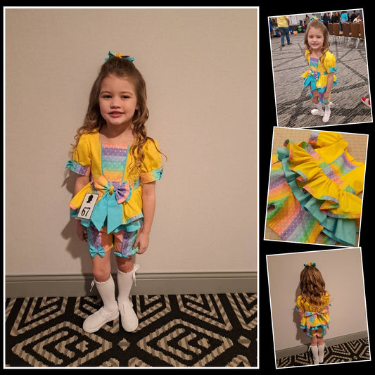 Pastel Rainbow and Dots Pageant Casual Wear Outfit. Top Shorts Bow Set. Perfect for Spring or Summer